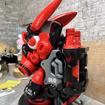 Robot de fibra de vidrio personalizado escultura de conejito centro comercial escaparate elementos temáticos de cerveza roja Instalación de mascota estatua de conejito robot rojo