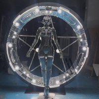 Bar Discothèque Décor Miroir Chrome LED Halo Anneau Illuminé Art Installation Fibre De Verre Cyberpunk Android Statue