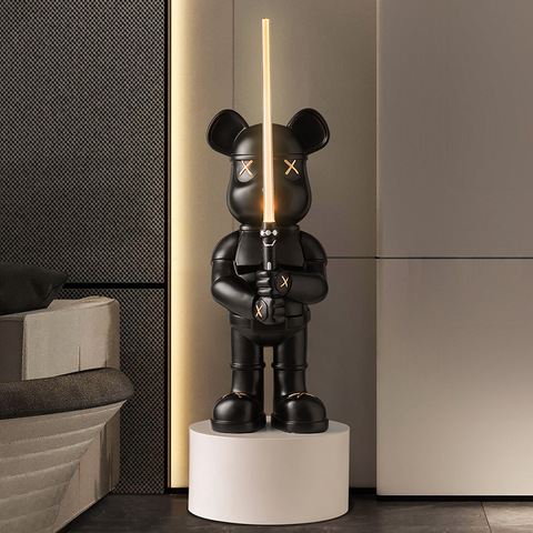 Lampe à épée LED en fibre de verre pour magasin d'art de décoration d'intérieur personnalisée Sculpture de lumière d'ours de dessin animé de rue