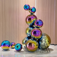 金属ボール彫刻カスタムグラデーションステンレス鋼球体アートワーク商用スペース手作り虹色